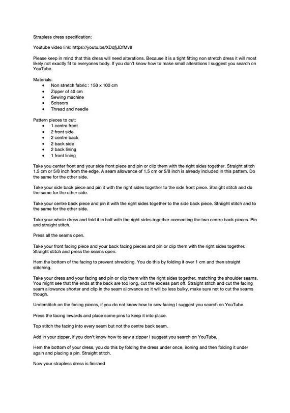A Pdf Sewing Pattern Digital Download Strapless Dress From Etsy