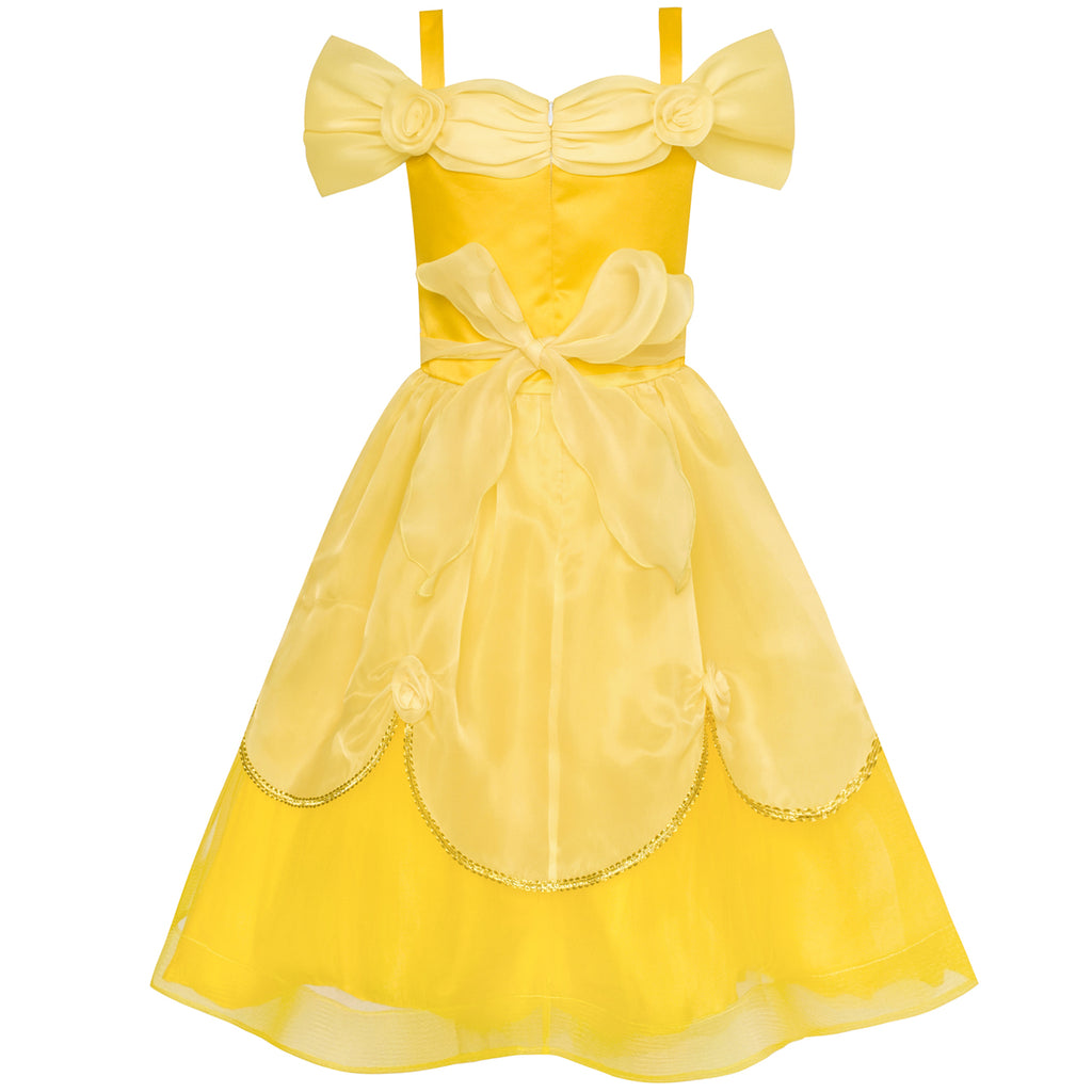 Girls Dress Yellow Princess Belle Costume Birthday Party Sunny Fashion